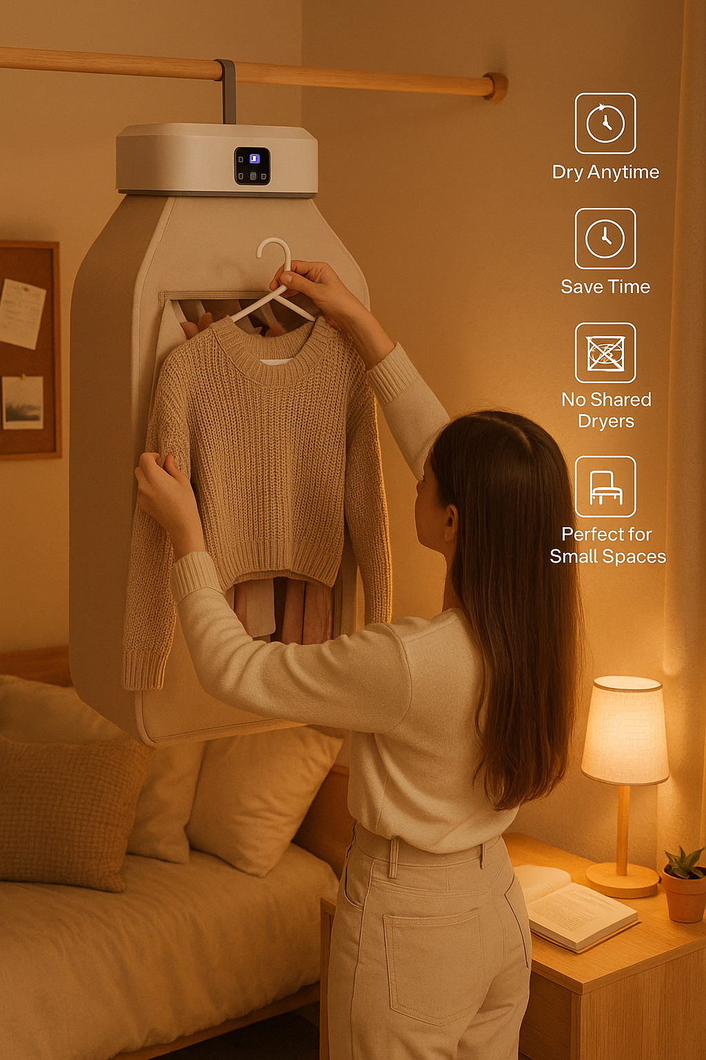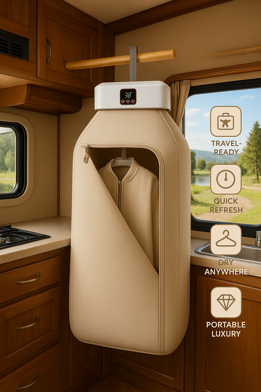 - Vent-free, anywhereSafe for dorms, RVs, vans, and tiny suites—no external vent or install required.